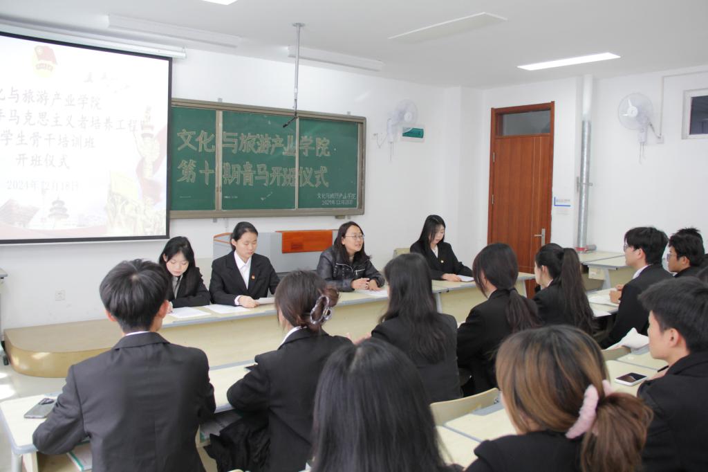 少年应有鸿鹄志,当骑骏马踏平川,为提高同学们的综合素质和社会责任感,培养有信仰,有能力,有志向的优秀大学生骨干,文化与旅游产业学院于2024年12月18日在南-208开展“青年马克思主义者培养工程”大学生骨干培训,文化与旅游产业学院院长、党总支负责人郭敏老师,团总支(学生)副书记贺睿妍,学生会执行主席高鸿飞出席本次仪式。