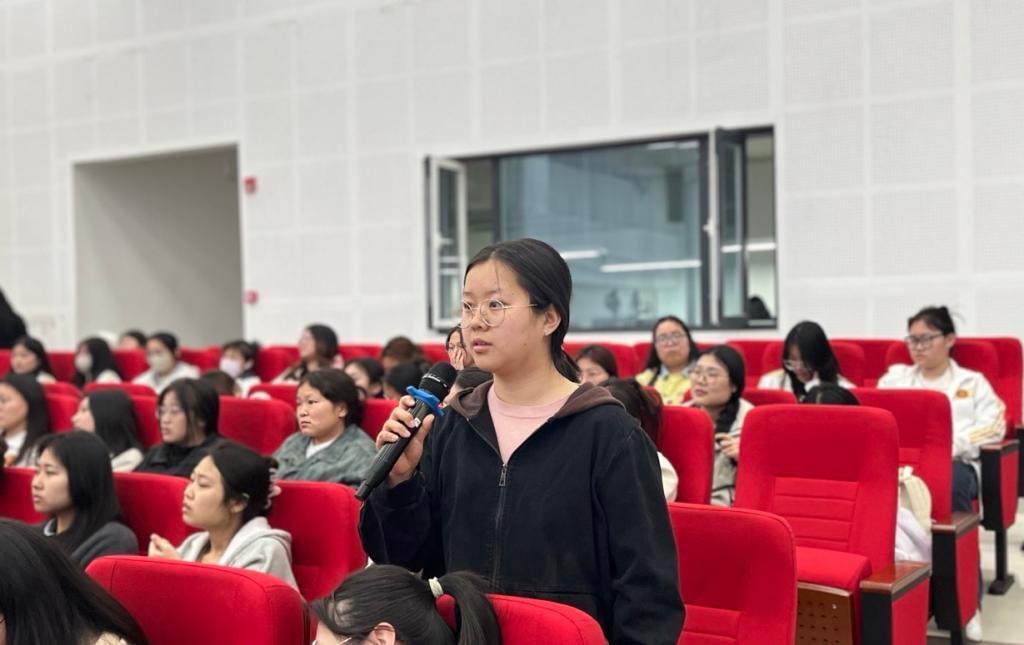 霍英杰学长围绕西部项目政策进行解答,从什么是西部计划、为什么要参加西部计划和如何参加西部计划三个方面来介绍。结合自身经历,向在场的同学们传授了宝贵的经验。随后,详细讲解了西部计划的项目简介、工作内容、相关政策、选拔流程以及相关地区西部计划的内容,引导同学们进一步坚定理想信念,锤炼意志品格,升华志愿情怀。最后,霍英杰学长解答了同学们的相关问题,鼓励同学们要牢记殷切嘱托、践行使命担当,在实现民族复兴的赛道上奋勇争先。