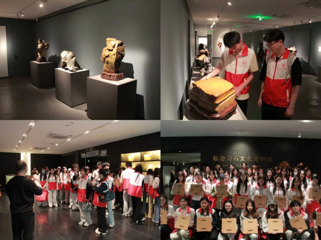 在本次“非遗绣艺,薪火相传”社会实践主题活动上,讲解员系统介绍绿松石、昆石、灵璧等中国传统名石,阐释其文化寓意、产地特征与鉴赏标准,讲述“米芾拜石”等经典文化典故,展示“熊猫献宝”“龙龟”等珍贵奇石藏品。参与者近距离观赏、触摸展品,直观感受大自然的鬼斧神工,深入了解赏石文化的历史脉络与艺术内涵。随后,大家前往刺绣体验馆,欣赏精美刺绣作品与传统戏服,亲身体验刺绣技艺,在动手实践中感悟传统手工艺的精湛匠心,活动还为参与者提供文化礼品与物资保障。
