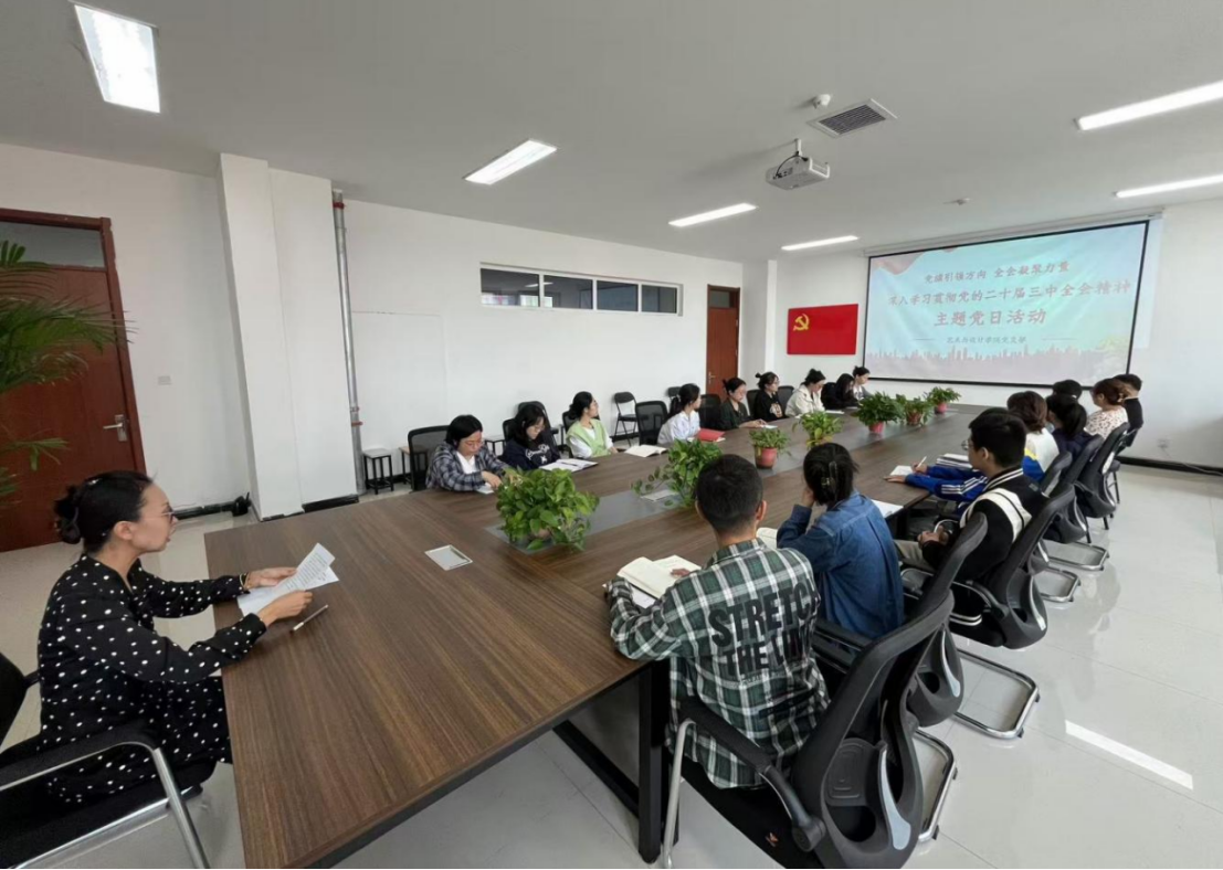 为深入学习贯彻党的二十届三中全会精神,引领广大党员青年深刻体会和感悟党中央的战略目标,践行“坚定不移听党话、矢志不渝跟党走”的行动指南,激发党员青年凝心聚力,担当作为,积极投身于中国式现代化建设的伟大实践中。为此,艺术与设计学院党支部于2024年9月27日开展“党旗引领方向 全会凝聚力量”--深入学习贯彻党的二十届三中全会精神主题党日活动。