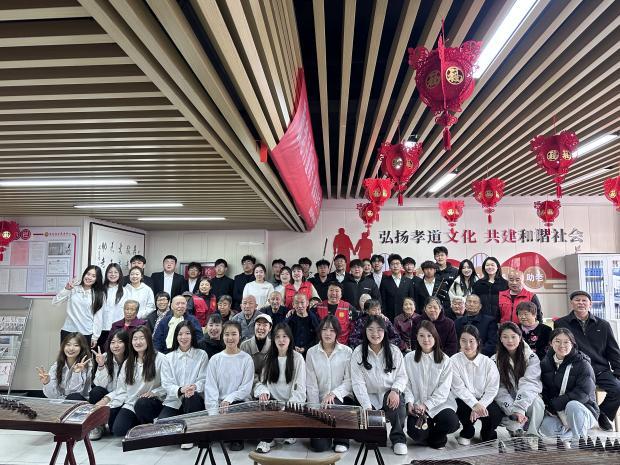 活动伊始,柳老师向志愿者们强调了此次活动的意义,希望大家用实际行动传递温暖。音乐专业的志愿者们轮番亮相,奏响传统民乐。他们通过演奏《刘老根大舞台》《十面埋伏》《我们走在大路上》《赛马》《扬鞭催马运粮忙》等15个精彩节目,以及剪纸作品展览等形式,为老人呈现了一场精彩绝伦的艺术盛宴。养老中心的李老师在总结时深情地表示:“艺术活动让老人们感受到了被关注的幸福,这种精神慰藉比物质关怀更为珍贵。”表演结束后,志愿者们分组陪伴老人,倾听他们讲述往昔岁月,从奋斗的青春到平淡的日常,每一段故事都承载着岁月的痕迹。