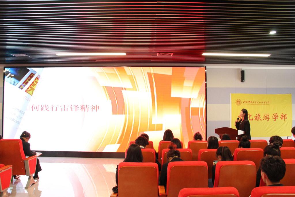 展青春风采,谱活力乐章。为深入学习贯彻党的二十大精神和习近平总书记关于青年工作的重要指示,进一步增强基层团组织建设,增进团员青年凝聚力和战斗力,文化旅游学部于3月17日下午在图书馆报告厅开展以“学习雷锋精神”为主题的团支部书记风采大赛,艺术学部团总支(学生)副书记和文化旅游学部主席团成员牛洋洋以及各部门负责人担任本次大赛的评委。