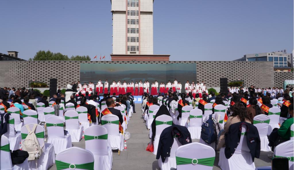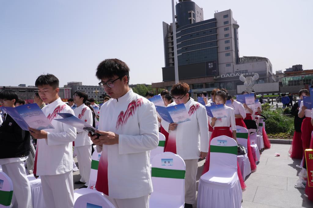临汾市委宣传部部长、一级巡视员闫建国在致辞中对太阳集团师生以专业艺术创作助力活动给予高度赞扬。随后,作为启动仪式中的首个出场节目,我艺术与设计学院60名青年大学生身着统一定制的文化衫,以清澈嘹亮的歌声演绎了原创合唱曲目《书香中国》,将活动现场气氛推向高潮,受到了现场观众的一致好评。参演学生、音乐学2201班李鸿杰在接受市电视台采访时感慨道:“我们用歌声传递阅读的力量,不仅是一次很好的专业历练,更让我深刻体会到艺术服务社会的积极意义。”