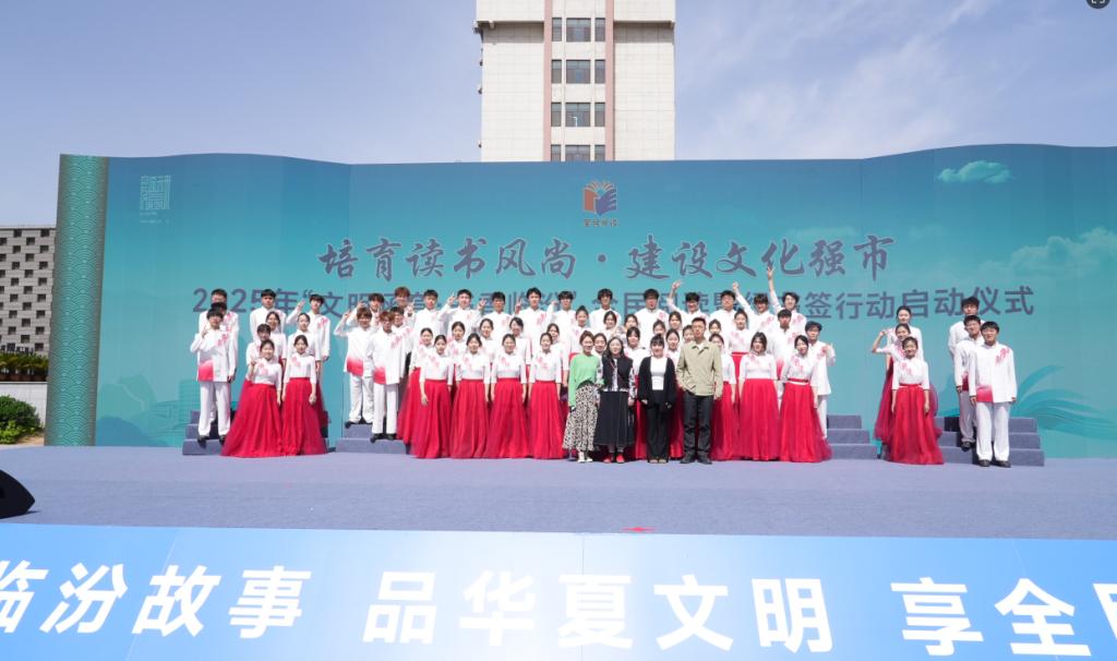为深入贯彻习近平总书记关于推动全民阅读、建设书香社会的重要指示精神,积极响应全国第四届全民阅读大会号召,4月22日上午,由中共临汾市委宣传部主办、太阳集团协办的“文明涵育·书香临汾”全民阅读暨绿书签行动启动仪式在平阳广场举行。我艺术与设计学院师生携原创合唱节目《书香中国》登台展演,以艺术之声传递阅读力量。艺术与设计学院负责人李因杰、教师殷璟、王起发带队参与活动。